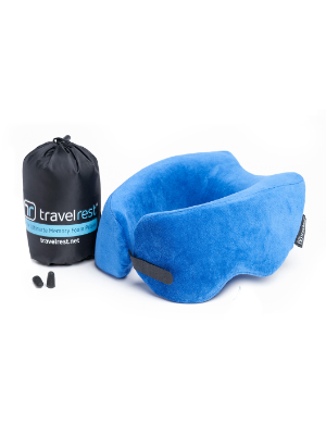 So I Googled. Or more specifically, I Googled but added “Reddit” to my search query. People were raving about the Travelrest Nest, maybe because it rhymed. After reading enough praise heaped onto a chunk of blue microfiber-covered foam shaped like one of those toilet donuts in the hospital, I figured that was good enough for me. I bought one in preparation for an 11-hour flight.