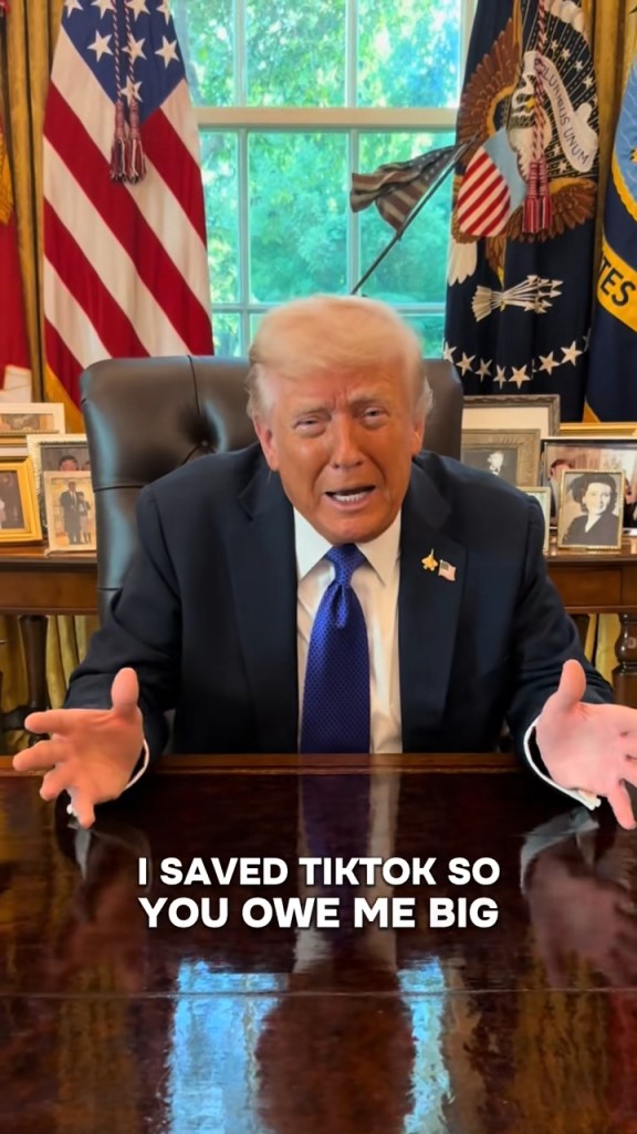 “To all of those young people of TikTok, I saved TikTok, so you owe me big,” Trump said in a video post.