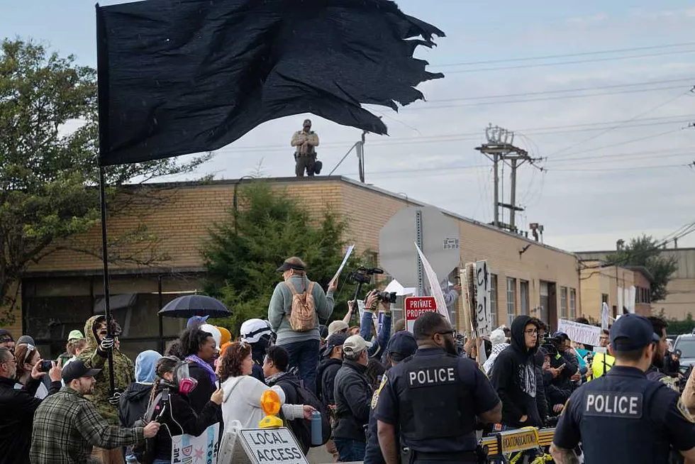 In footage of the political procession, Dowling can be seen leading a gaggle of photographers and holding a monstrance, the container meant to hold the Eucharist, in the faces of state police while asking for access to the facility. It is unclear whether the monstrance contained a consecrated host at the time.