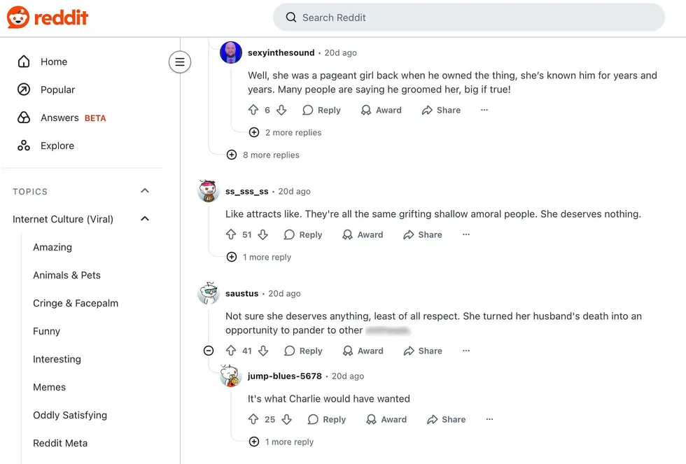 A recent Reddit discussion on the assassination of Turning Point USA founder Charlie Kirk.Reddit