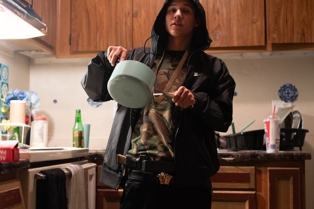 The photo of Zombie and the photo of the teenager making macaroni are two of my favorites. They feel oddly juxtaposed to me—the kid cooking dinner with a pistol in his waistband, and an established drug dealer doing comparatively chill-looking admin in a Motel 6. They kinda reflect aspirations and reality, if you know what I mean.