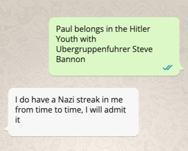 “I do have a Nazi streak in me from time to time, I will admit it,” Ingrassia allegedly wrote in one message sent in May 2024.