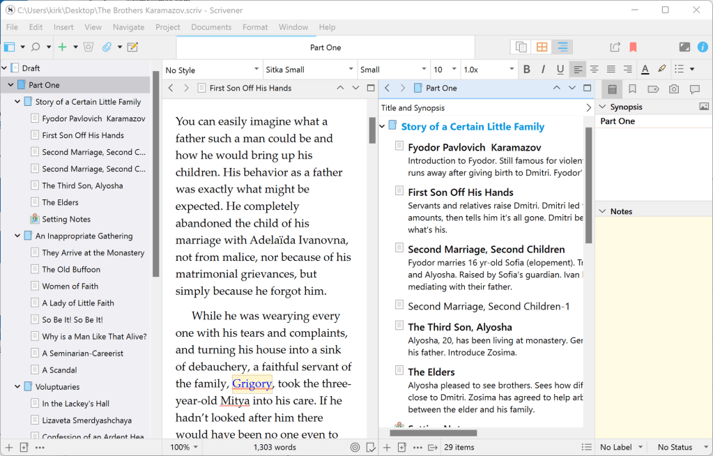 Apple owners get the luxury of choice. Both apps are available for Macs. If you own a Windows PC, your decision is already made for you: Scrivener.