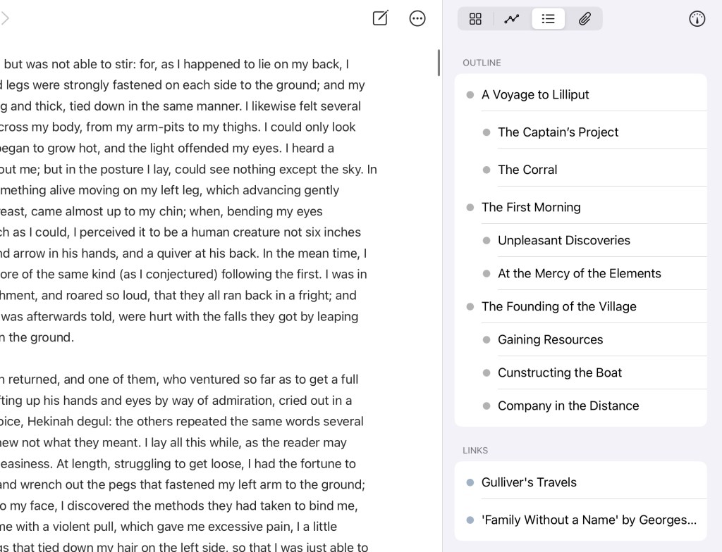 I’ve used it to create areas for outlines, character backstories, and scrap sheets of writing I like but just don’t have a home for yet. Ulysses is more of a sandbox, and Scrivener is more of an Erector Set.