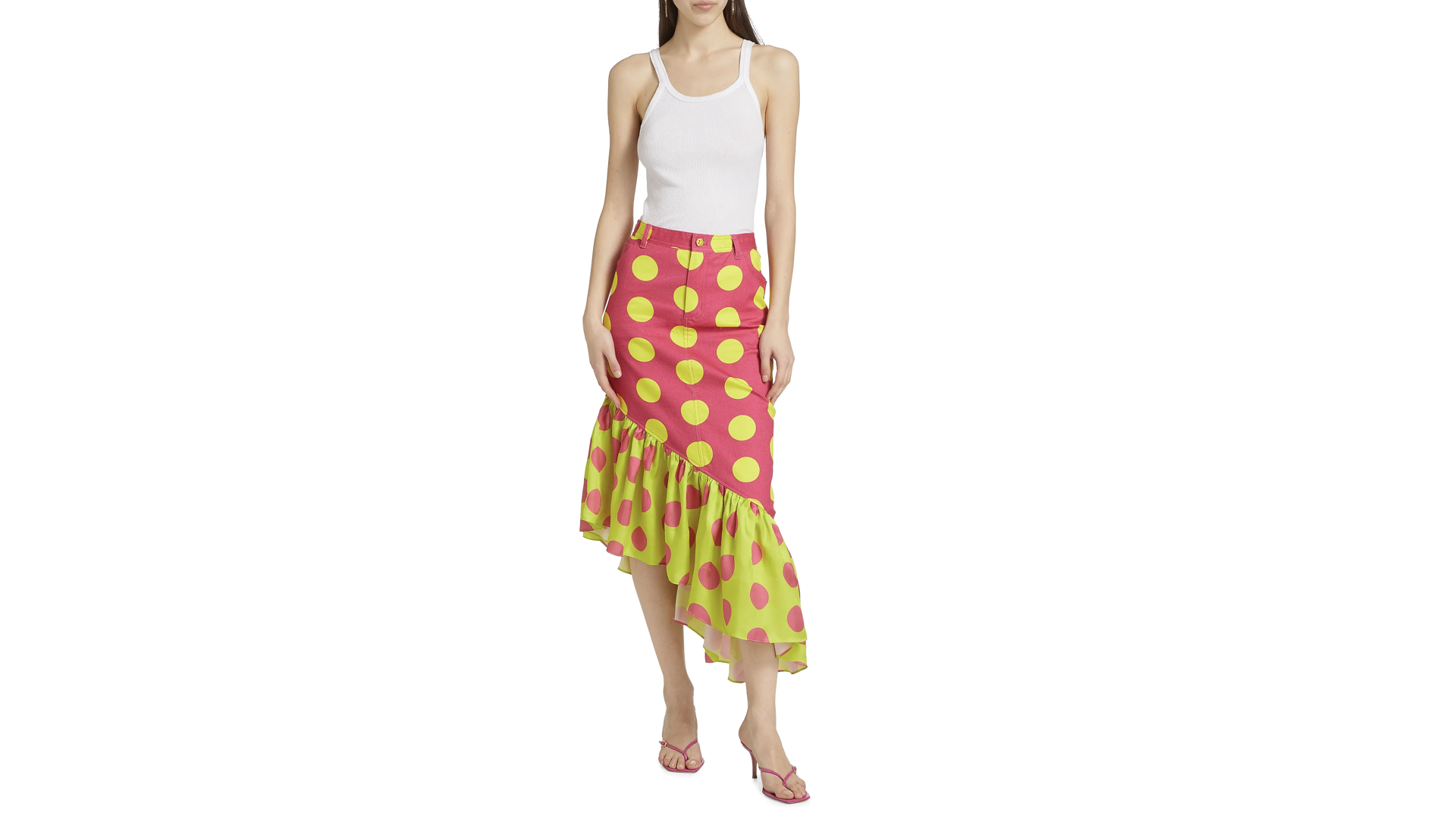 BruceGlen Ruffled Polka Dot Midi-SkirtDown From $395Twin brother designers BruceGlen made one of the most fun polka dot pieces with their colorful take on the trend. The midi skirt contrasts pink and yellow-lemonade hues with an asymmetrical ruffle hem that looks made for dancing. This piece is for the bold sartorialist ready to keep color alive in their fall wardrobe.Shop At Saks 5th Avenue$198
