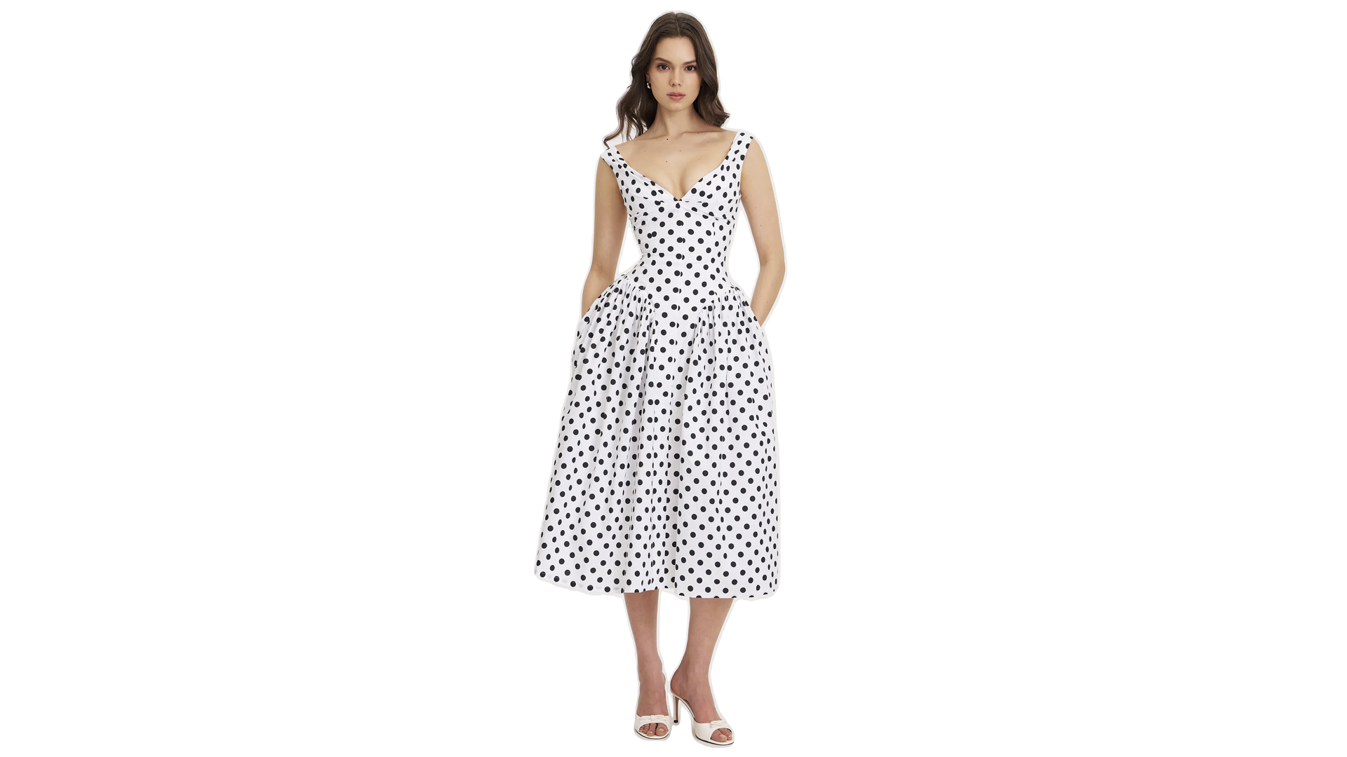 Miss Circle Rahma Polka Dot Drop Waist Midi Cotton Poplin DressBetween its classic colors, drop-waist, and midi-length, Miss Circle Rahma dress channels something elegant and vintage that’s almost Marilyn Monroe-esque. The piece is highly versatile, depending on styling and can be easily worn from brunch to dinner. Though this garb is a typical summer dress, it’s even more fun to wear in the fall with the right layering. Try throwing on a contrasting safari jacket with a beret and knee-high boots, for example.Shop At Nordstrom$229