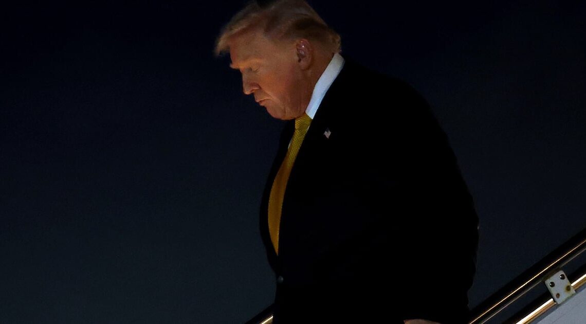 President Donald Trump slumped into a waiting limousine after landing in Palm Beach for a Mar-a-Lago weekend on Friday—even as he demanded lawmakers keep at it in Washington, D.C., amid the ongoing government shutdown.