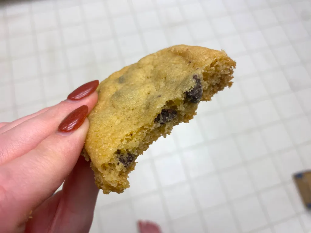 There’s a reason I ate five of these back to back — they’re delicious. They’re not your average store-bought chocolate chip cookies. That’s what’s so fun about the take-and-bake design: They taste 10x better because you made them at home in your own oven. Every single bite has melty chocolate chips in it, so my chocolate lovers will not feel slighted by these cookies.