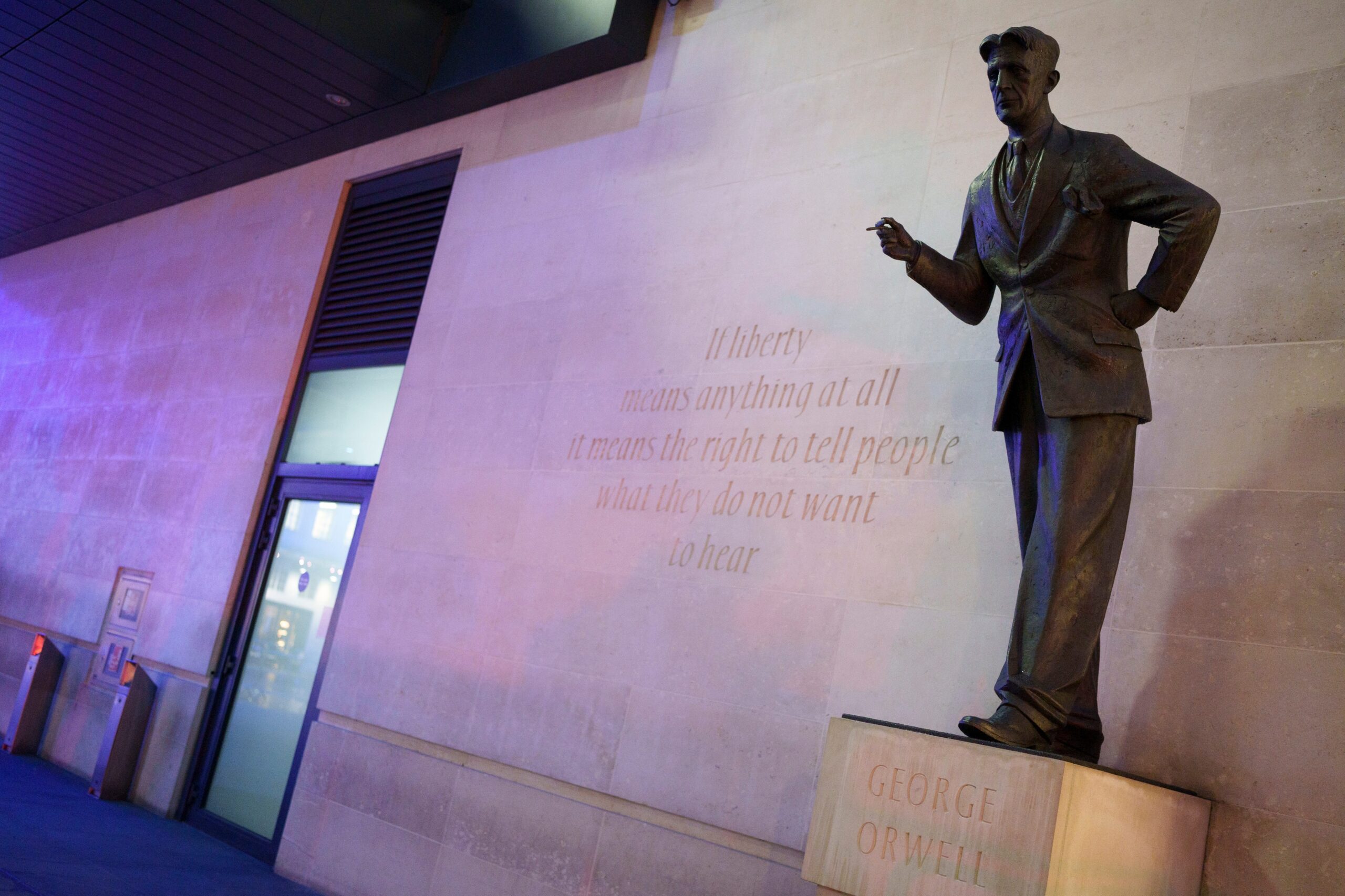 Outside the British Broadcasting Corporation’s main headquarters in the heart of London stands a statue of journalist and writer George Orwell smoking a cigarette. Reporters often cluster around to join him in the act, standing in front of the quotation etched into the wall beside the figure: “If liberty means anything at all, it means the right to tell people what they do not want to hear.”