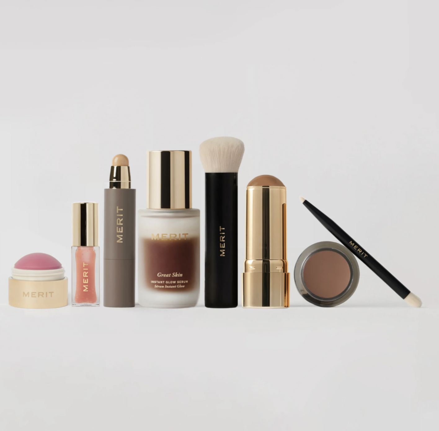 Merit bestsellers worth adding to your cart include The Minimalist Perfect Complexion Stick (a light-to-medium coverage dual-purpose face product that doubles as foundation and concealer), The Flush Balm cream cheek tint, the Shade Slick (a moisturizing tinted lip oil), and Day Glow highlighting balm.