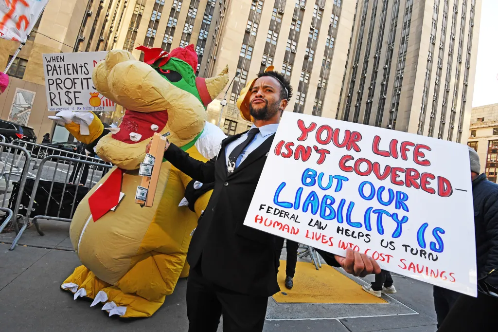Jonathan Garthrelle gathers out front of Manhattan’s Criminal Court as Luigi Mangione, who is being charged for the murder of United HealthCare CEO Ben Thompson, appears in court today. Matthew McDermott