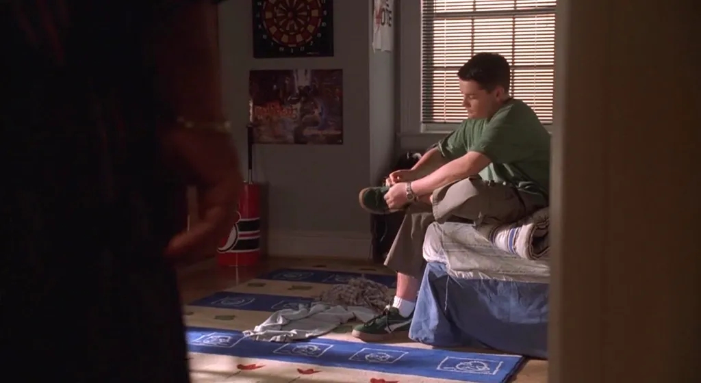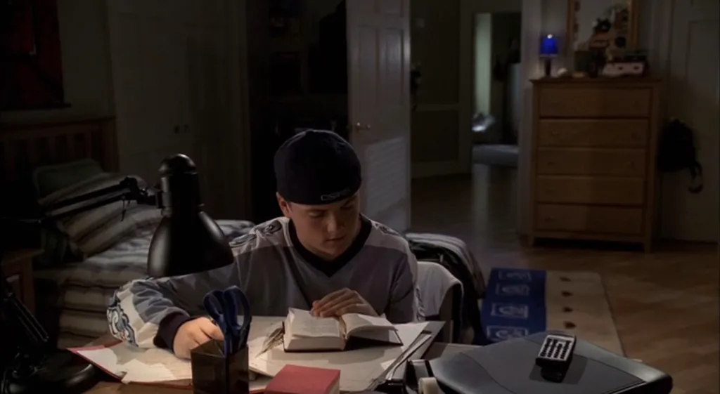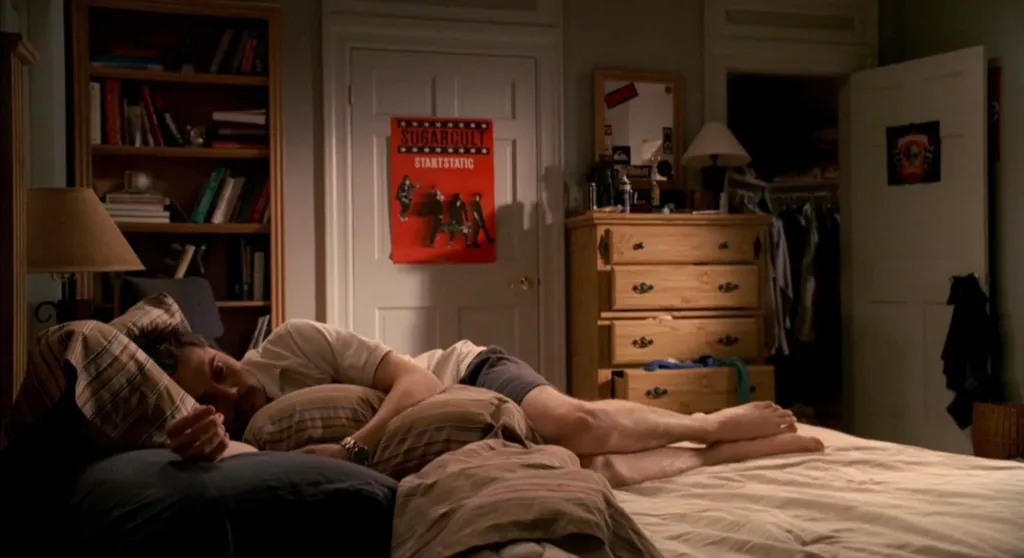 Shot in 2000 and airing in 2001, season 3 dovetails beautifully with the release of White Pony. Conditions were primed for the iconic logo to appear on something, somewhere. Following the death of his grandmother, we see him blasting Slipknot at his desk (various forms of Slipknot merch notably enter his wardrobe this season, including the iconic maroon windbreaker). In the next episode, he’s in a Coal Chamber hoodie. And yet, again, no Deftones. This is beginning to get frustrating. The pool party scene in the “Back to School (Mini Maggit)” video could literally be a shot from episode 9, when AJ and friends break into the school pool and trash it.