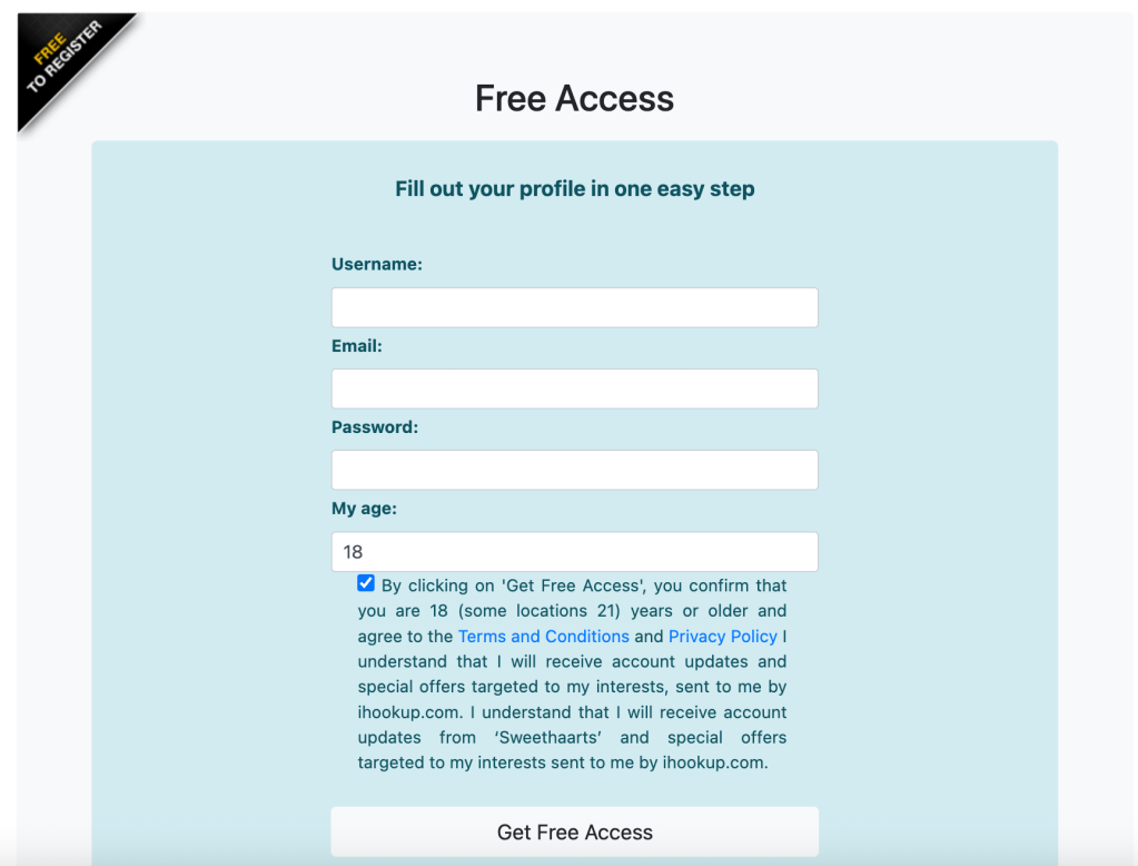 Signing up for iHookUp is fairly straightforward and done through the desktop site:
