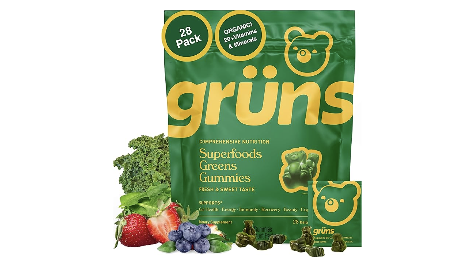 Grüns Superfoods Greens GummiesWellness junkies have likely seen these superfood gummies pop up in their feeds. For folks who take a daily multivitamin but always find themselves wanting another gummy, the tasty chews boast a subtle strawberry-and-greens flavor. Each daily packet comes with eight bear-shaped gummies packed with essential vitamins, minerals, adaptogens, and fiber.