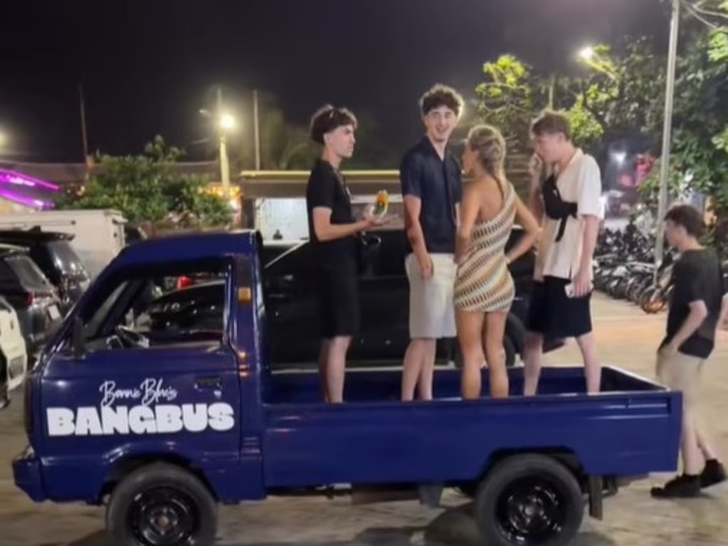 Footage of her driving around in a blue, ‘Bangbus’ branded pickup truck with young men in the back has been circulating on social media.