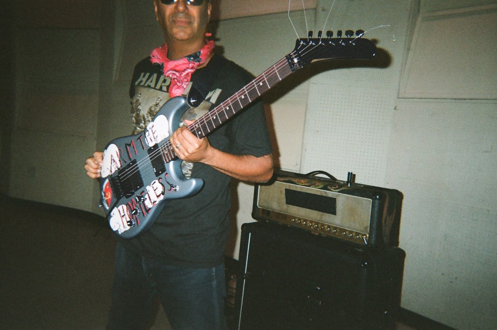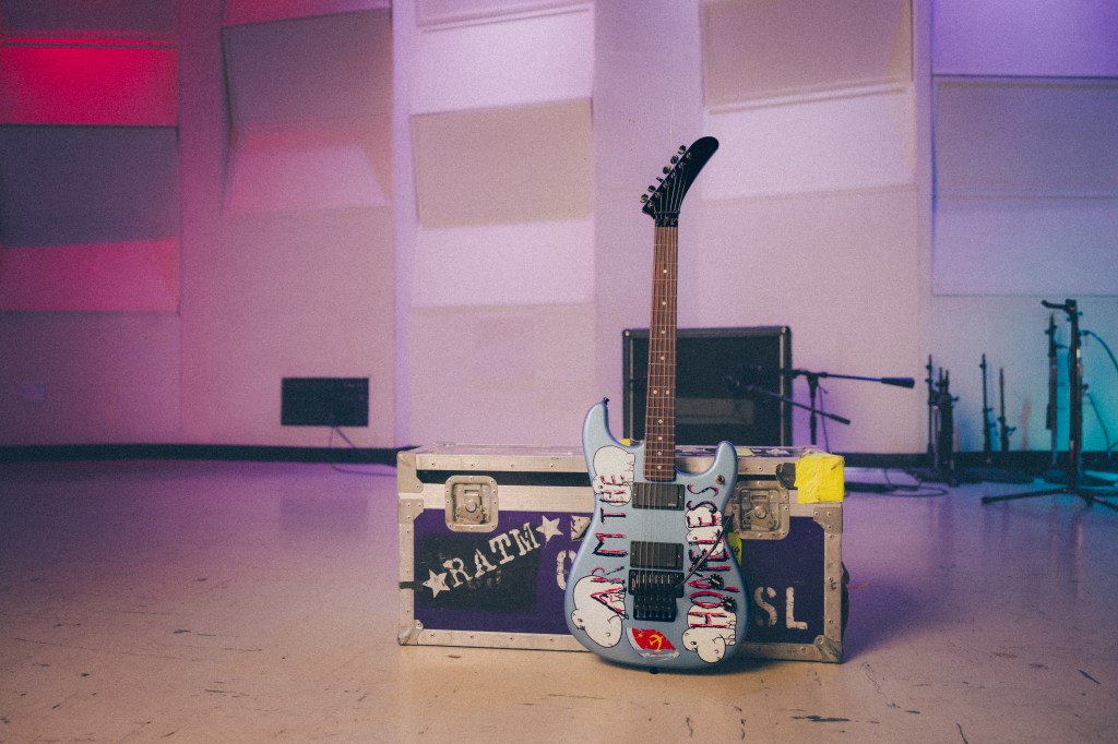 The real “Arm The Homeless” guitar is a Frankenstein’s monster, of sorts