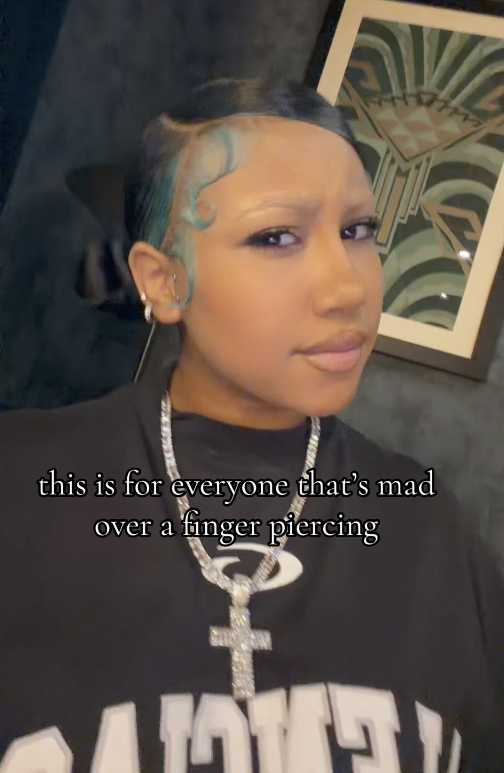 The pre-teen then wrote atop the clip, “This is for everyone that’s mad over a finger piercing.”