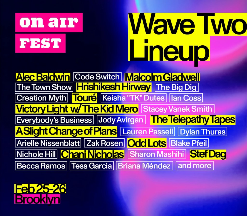 On Air Fest has seen the likes of Seth Meyers, Norah Jones, Bon Iver’s Justin Vernon, David Remnick, Anderson Cooper, Terry Gross, Francis Ford Coppola, Ira Glass, and Astead Herndon grace its stages since it began in 2018.