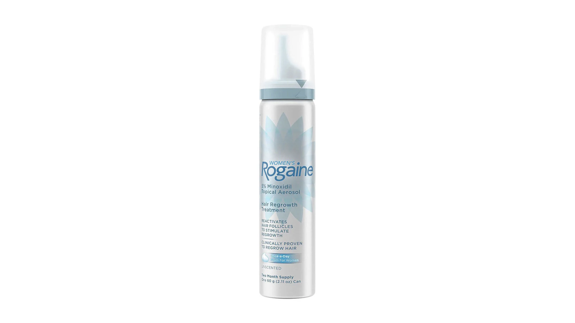Rogaine Women’s FoamRogaine’s main ingredient is minoxidil, which has been clinically proven to help with hair growth. Minoxidil helps hair thinning by stimulating hair follicles and allowing them to be in the growth phase for an extended period, allowing for regrowth. Dr. Smith also recommends Rogaine because topical treatments deliver active ingredients directly to the scalp and hair follicles to enhance the environment for optimal follicular fertility, hydration, and support, which allows you to see results faster than other treatments. In fact, Rogaine has been shown to provide four times more hair regrowth in just 16 weeks.See At Rogaine