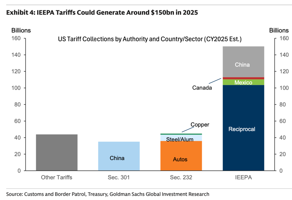 The Committee for a Responsible Federal Budget calculated that sending the $2,000 checks would cost $600 billion, about twice as much as the annualized revenue once contemplated from all of the tariffs in place. The IEEPA tariffs have collected about $130 billion year-to-date, Goldman calculates, with another $20 billion or so due to come before the new year. If the Supreme Court rules against the tariffs, importers are also likely to receive refunds eventually, but that could take several months of legal wrangling to clear up.