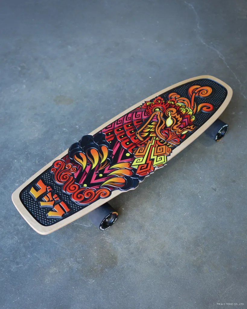 As part of the launch, which are available exclusively on Bear Walker’s official site, we are thrilled to debut Attack Peter’s Burning Godzilla – Collector’s Edition Cruise, a limited edition of 30 priced at $450, as well as Attack Peter’s Street Deck, an open edition priced at $96. See the images below.