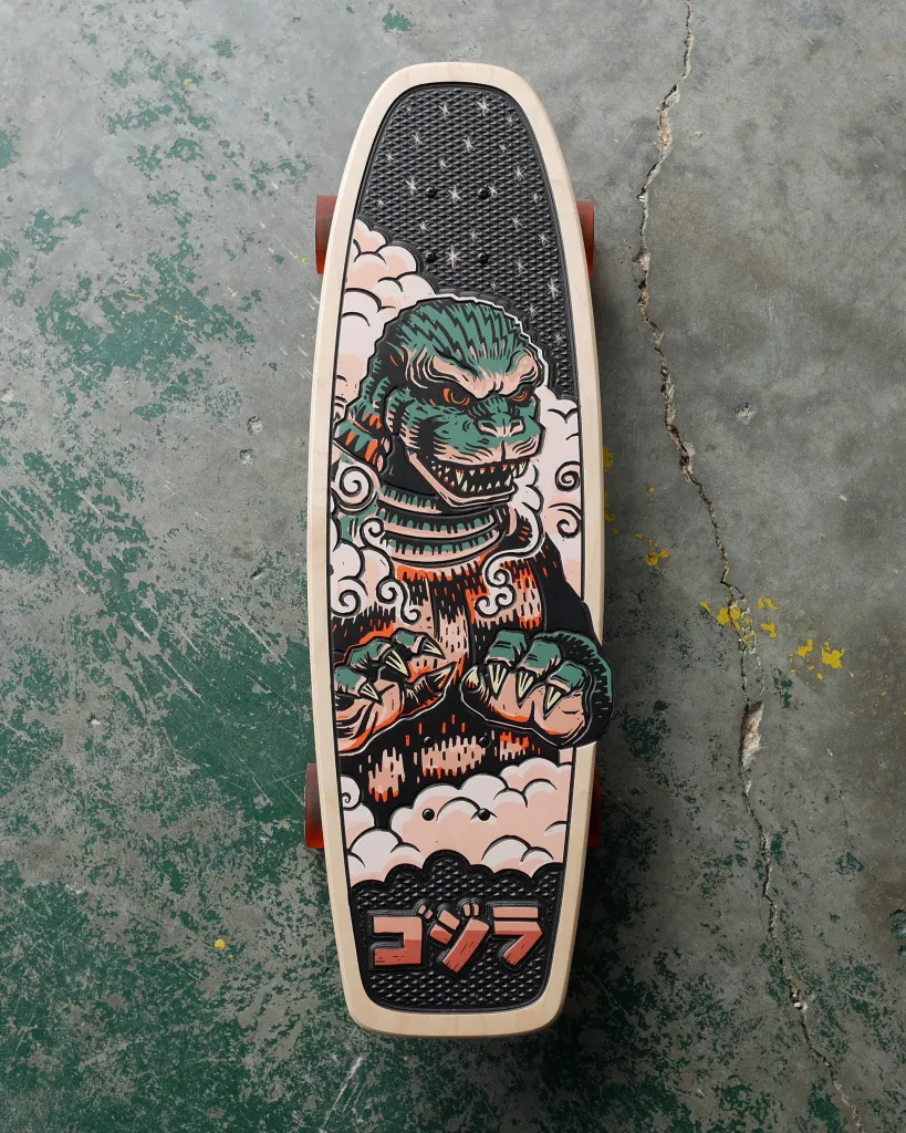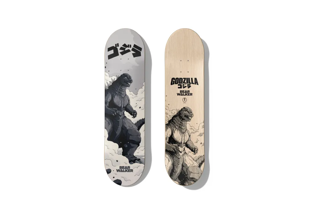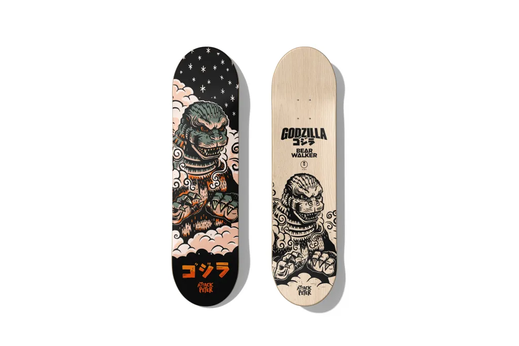 Bear Walker, the custom skateboard company, is teaming up with legendary film studio Toho, home to the King of the Monsters, for a collection timed to the 30th anniversary of “Godzilla vs. Destoroyah.” And the artwork for the new boards is being handled by Attack Peter aka Peter Santa-Maria, the Mondo artist who has brought Godzilla to life many times before.