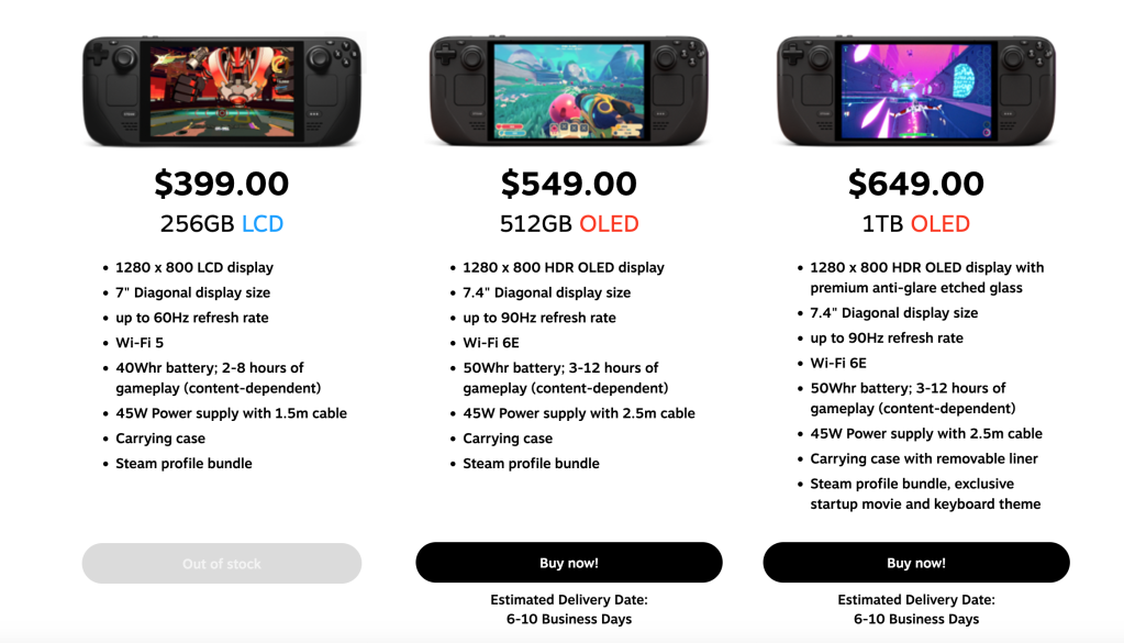 Now that the 256GB LCD model is showing as out of stock, players only have two options left when shopping for a new Steam Deck. The $549 512GB OLED becomes the new low end of the scale and the $649 1TB OLED is the premium option.