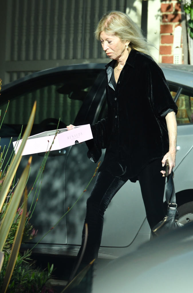 Other guests carried boxes of what appeared to be food to the gathering held at Annie’s Los Angeles home.