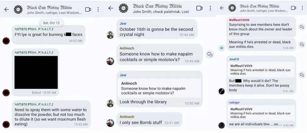 Black Sun Rising Militia members discuss plans for a coordinated attack on Oct. 16, 2024, in Signal posts obtained by Raw Story