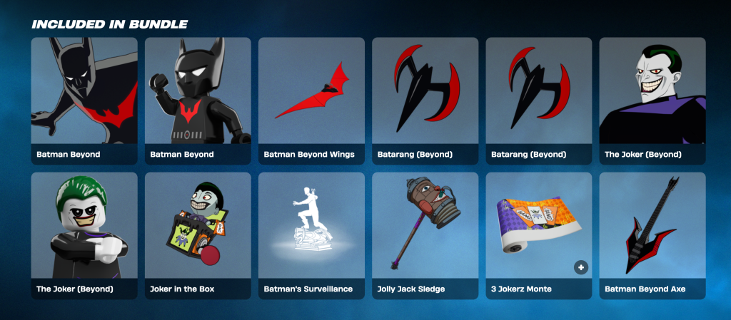 That timeframe gives Fortnite players just one week to make the purchase. The full bundle costs 2,800 V-bucks, which is about the equivalent of $28 in US currency. Players also have the option to buy the characters individually. Both the Batman Beyond skin and The Joker (Beyond) skin are available for 1,500 V-Bucks each.