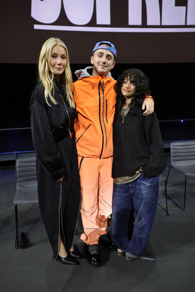 Gwyneth Paltrow, Chalamet and Odessa A’zion at a special screening of “Marty Supreme” in Los Angeles last month. A24 via Getty Images
