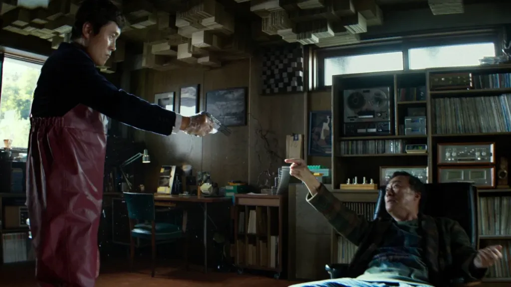 No filmmaker alive makes complex blocking look as easy as “No Other Choice” director Park Chan-wook does. This is true of multiple scenes in his latest film, including when desperate, unemployed protagonist Yoo Man-su (Lee Byung-hun) sets out to kill Goo Beom-mo (Lee Sung-min), one of his competitors for a soon-to-be open job position. Man-su’s assassination attempt quickly goes awry, first when Beom-mo discovers his wife’s (Yeom Hye-ran) infidelity and then again when she crashes Man-su’s hit.