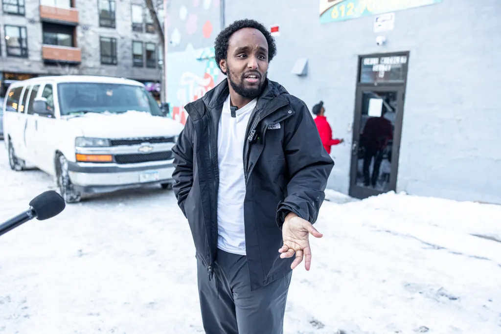 “Quality Learing Centers” owner’s son, Ibrahim Ali, speaks to the press outside the day care that is at the center of an alleged fraud scheme in Minnesota. LP Media for NY Post