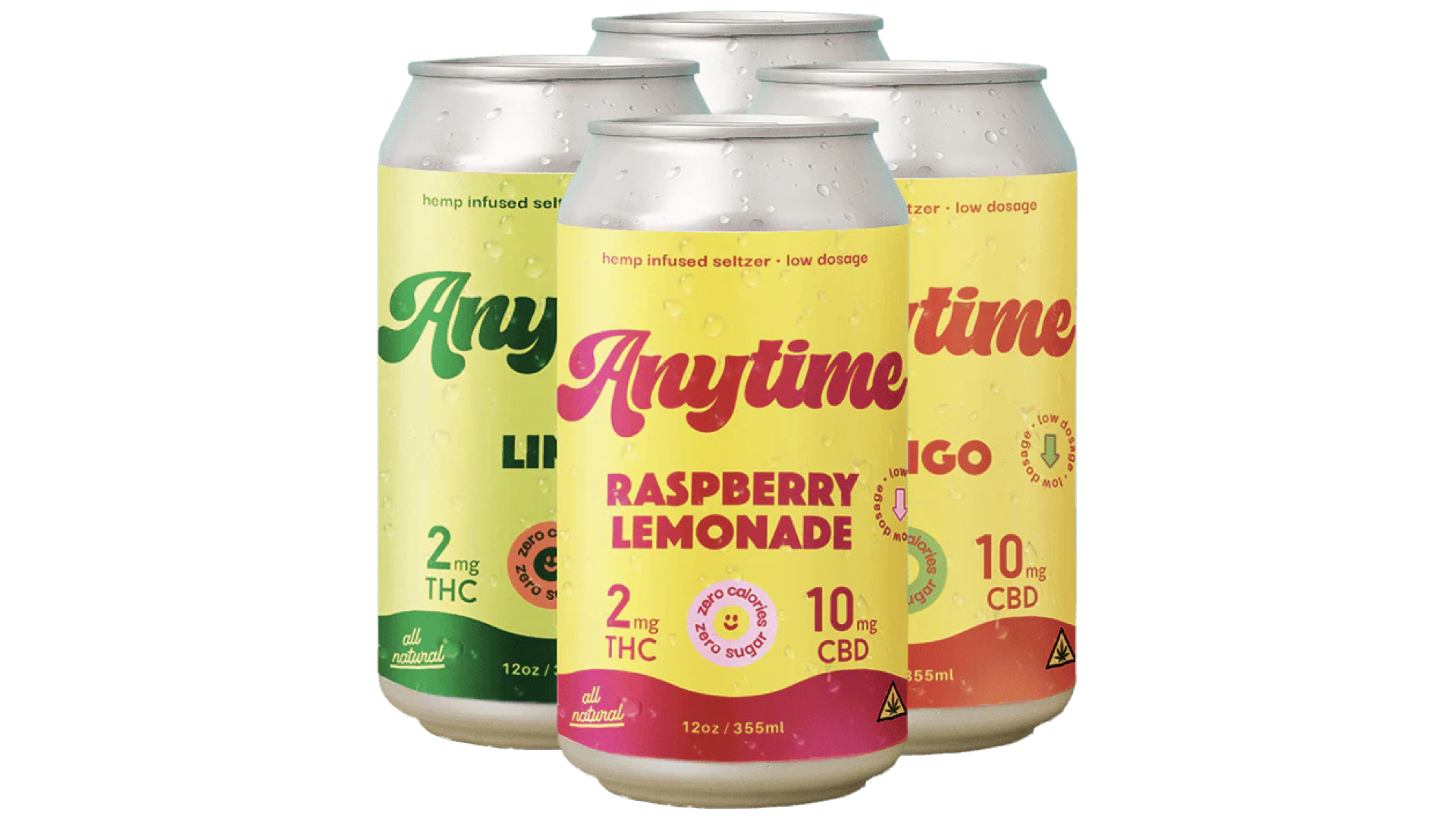 AnytimeAnytime seltzers are zero-calorie, zero-sugar treats in flavors including mango, lime, strawberry kiwi, and raspberry lemonade. All the flavors are available in two, five, and 10 milligram options, so it’s easy to find the taste and effect you’re looking for. I found the two milligrams to be very light, not at all incapacitating–I tried it in the mango, which was almost sour, but I generally avoid sweetness in flavored seltzers, so I found the flavor delightful.