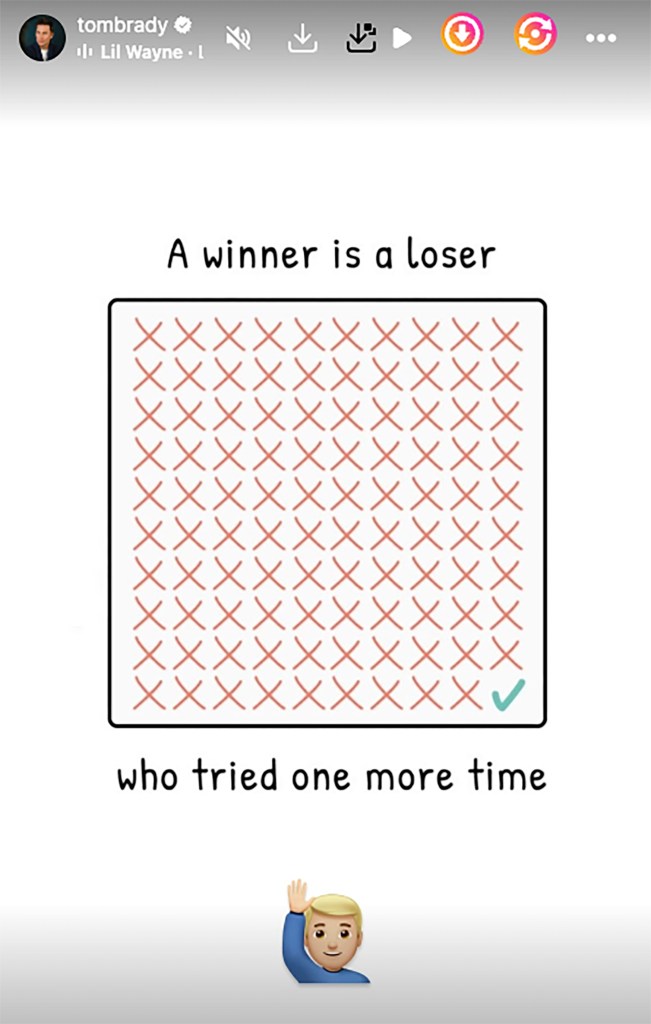 In the subsequent slide, the seven-time Super Bowl winner labeled himself a “winner” — a.k.a “a loser who tried one more time.”