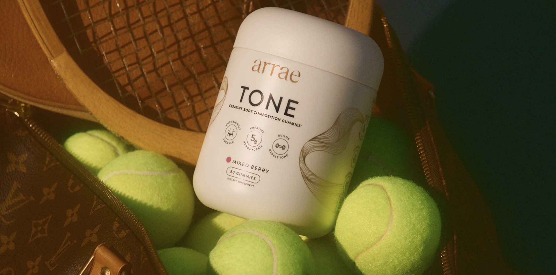 Arrae’s Tone Gummies are formulated specifically for women to promote lean muscle mass, enhance post-workout recovery, and aid digestion. Along with five milligrams of creatine monohydrate, these gummies also contain gut-nourishing ginger and a postbiotic to combat bloating, foster regularity, and prevent any unwanted “bulking.”