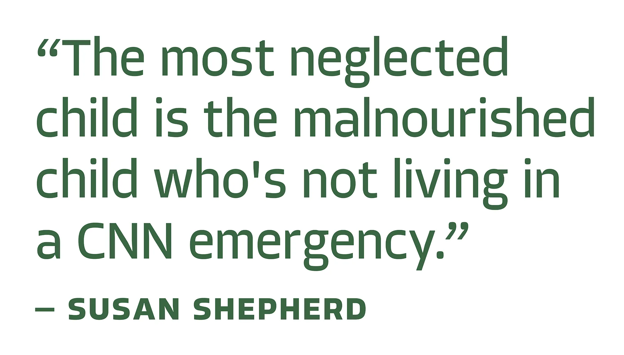 “The most neglected child is the malnourished child who’s not living in a CNN emergency,” Susan Shepherd, a pediatrician with ALIMA, told me.