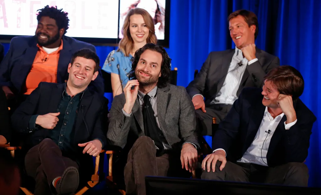 Chris D’Elia with costars and producers of “Undateable” on Jan. 16, 2015. REUTERS