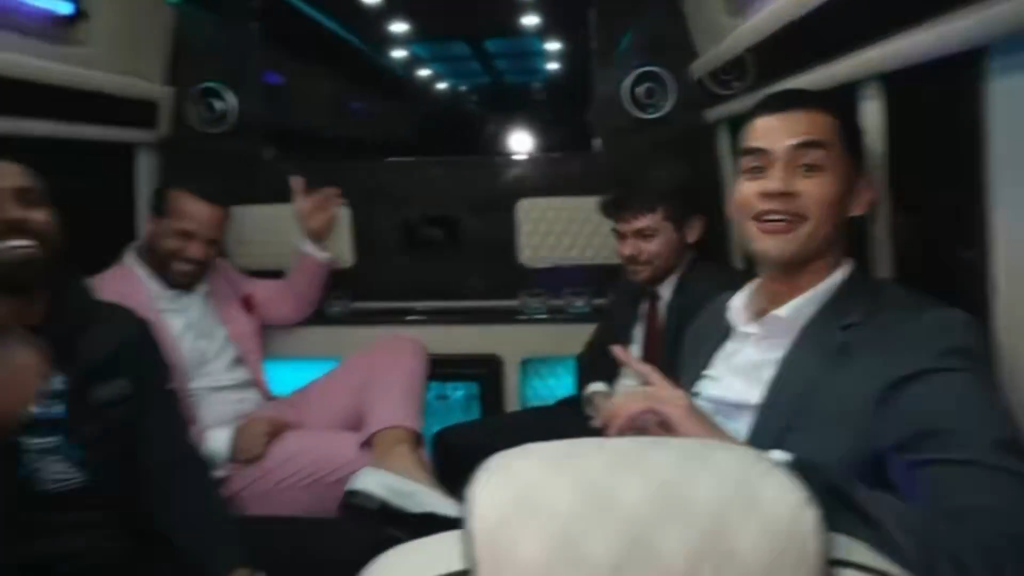 Fuentes, Tate and his brother, Tristan, Clavicular, Sneako, Justin Waller and Myron Gaines bopped to the song en route to the popular club Vendôme.