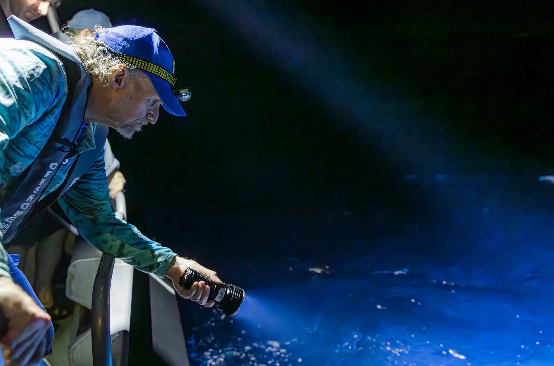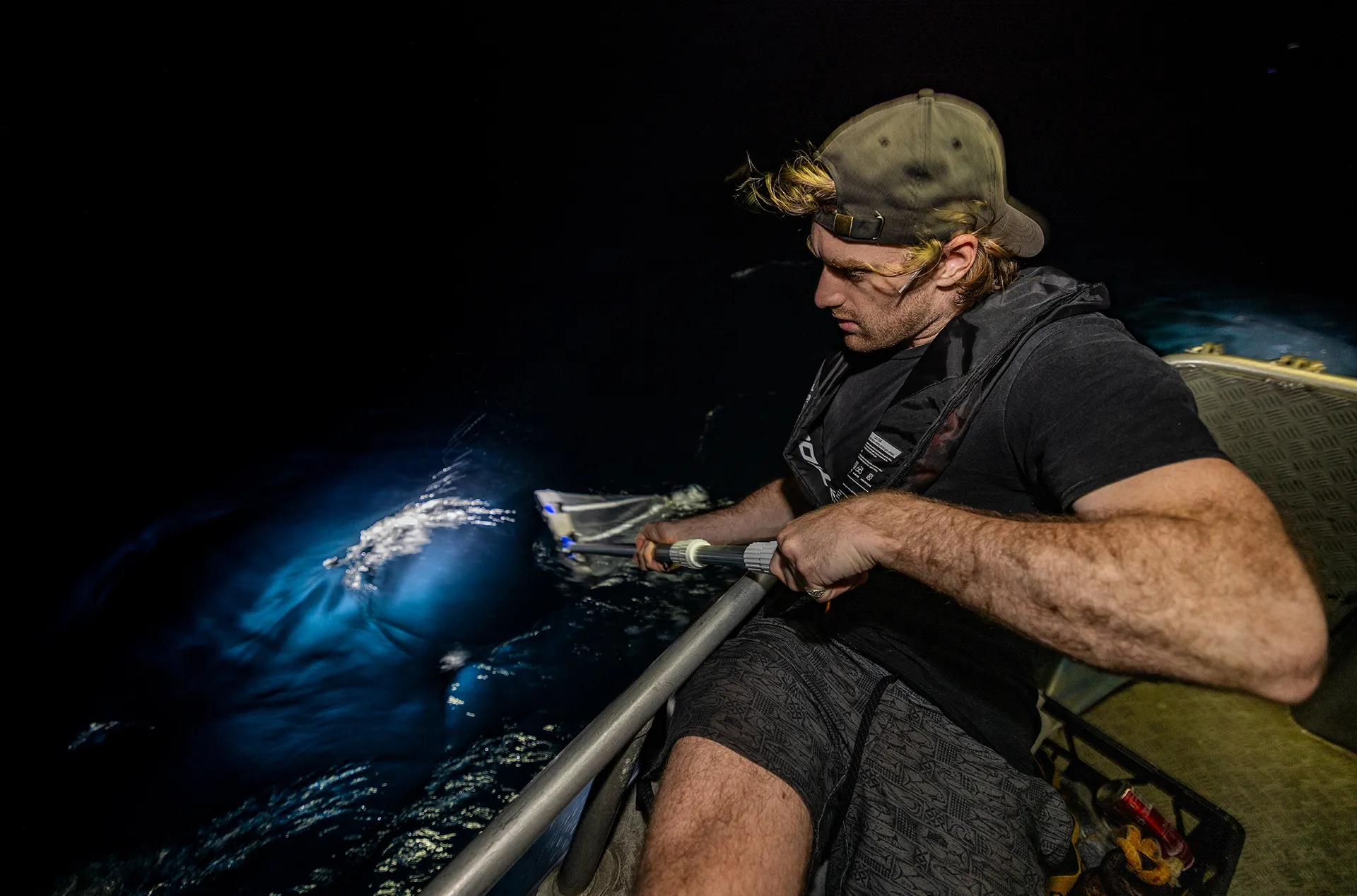 CAIRNS, Australia — “I just got a whiff,” said Peter Harrison, a marine scientist, as he leaned over the edge of the boat and pointed his flashlight into the dark water. “It’s really coming through now.”
