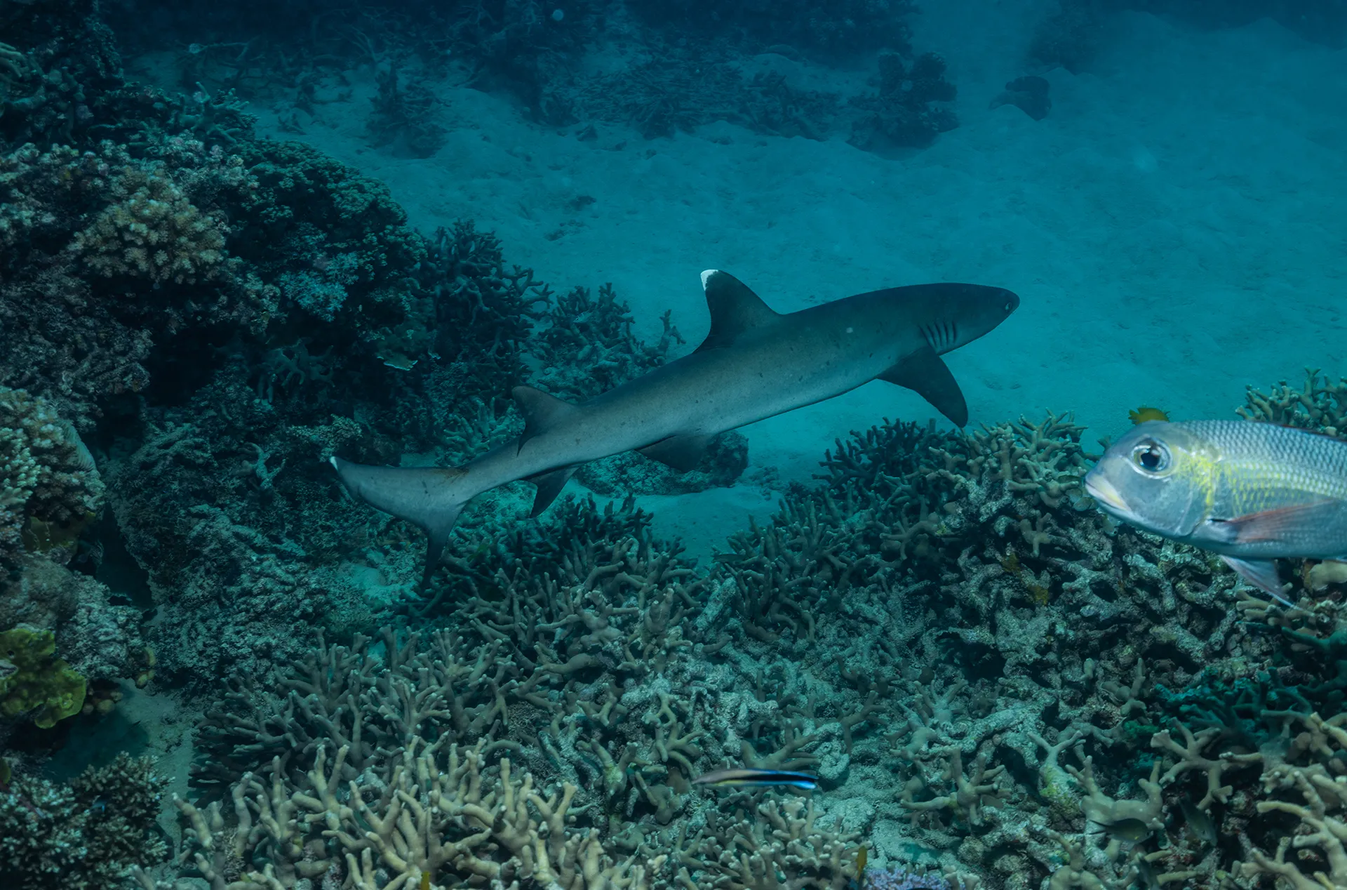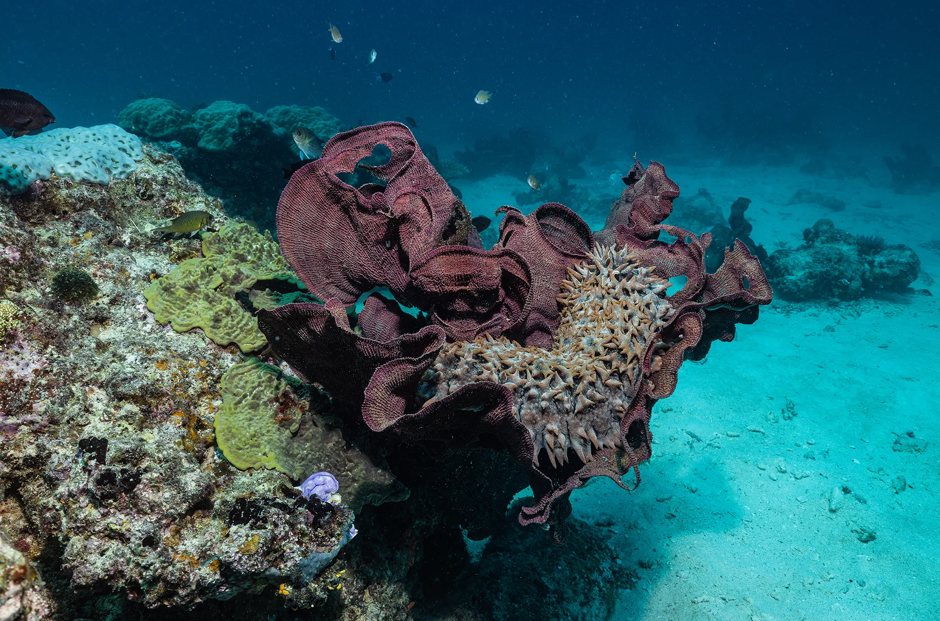 What really struck me was the color. Two decades of scuba diving had led me to believe that you can only find vivid blues, reds, oranges, and pinks in an artist’s imaginings of coral reefs, like in the scenes of Finding Nemo. But coral colonies on the reefs I saw here were just as vibrant. Some of the colonies of the antler-like staghorn coral were so blue it was as if they had been dipped in paint.