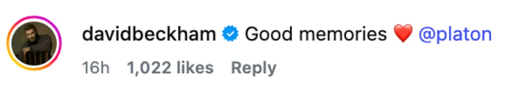 The two stars left comments under British photographer Platon’s Friday Instagram post, where he shared two throwback photos of David, 50.