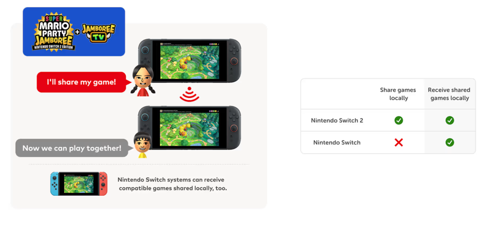 The central pitch of GameShare is to let everyone play a game, even if only one person owns it. With a Nintendo Switch 2 system, players can use GameShare for supported titles to play games with friends and family who are using other Switch or Switch 2 systems.