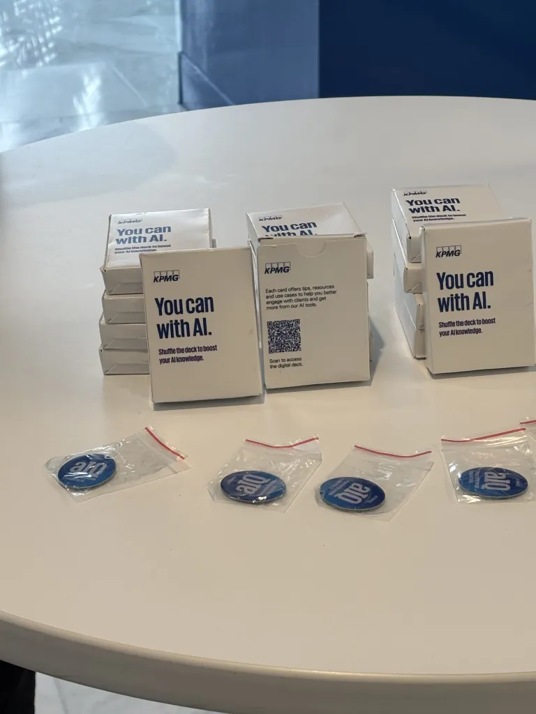 Given that KPMG has 2,400-plus partners, there’s sometimes not enough Lakehouse to go around. (KPMG said it sometimes works with several partner hotels to accommodate larger groups if necessary.) As Magee wheeled around the sidewalks and man-made lakes of Orlando, she highlighted features such as the on-site beekeeper (four colonies and 80,000 bees, by las count) and falconer (to steer away the prospect of coyotes, snakes and alligators). She also highlighted the many ways KPMG is turning Lakehouse into an AI crash-course, even down to AI-themed playing cards, available at its aIQuad, its AI channel on a nearby TV and the library located next to The Blend featuring AI thought leadership books. (She wouldn’t let Fortune walk away with a deck, but she did offer a gift of AI-themed dress socks.)