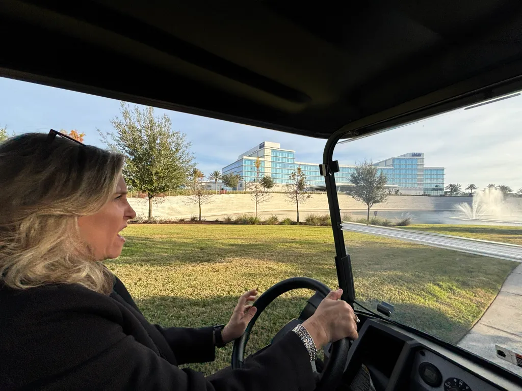 Sherry Magee, a longtime Orlando resident who has worked at Lakehouse since it was a construction site, drove this editor around the campus in a (quite fast-moving) golf cart, emphasizing that the central Florida location was within a two-hour flight for most of KPMG’s U.S. workforce.