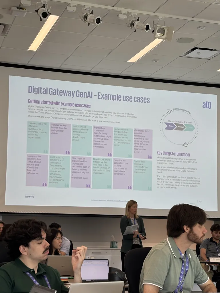 At the heart of the current lesson plan is a framework in which KPMG instructors training tax interns to “think, prompt, check,” or TPC. Holly Ricker, a director in the tax learning and development group, told Fortune that the framework had evolved in just the last three months; it used to be “think first, prompt later,” but she and other instructors realized that they needed to explicitly tell students to check things. “We were telling everyone to think first and then prompt, but … just because you’re prompting, doesn’t mean you’re getting the right prompt.” She said she’s pleased with the early results. “Everyone’s going around saying ‘TPC, remember the TPC.’ It’s really caught on.”