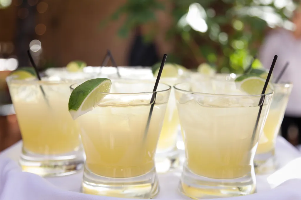 Santa Fe, New Mexico, United States. Tray of margaritas on the rocks