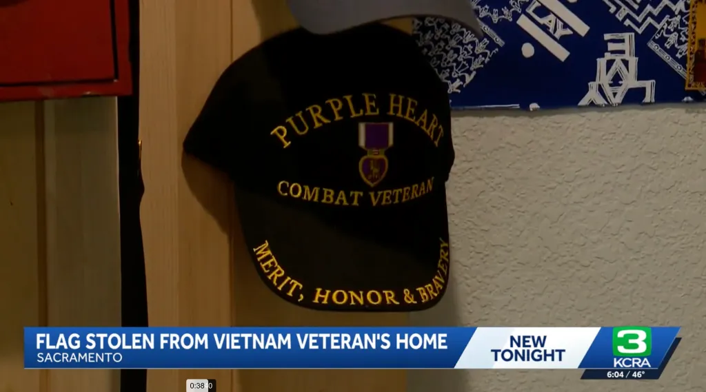 An ailing Vietnam veteran who was honored with the coveted Purple Heart was “heartbroken” when a thief made off with an American flag he proudly hung on the porch at his California home.