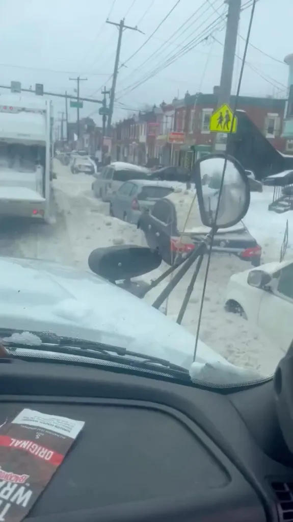 The footage captured the snowplow operator driving through Philadelphia’s Kensington neighborhood as he piled even more heavy snow against the vehicles that were already buried on the city streets.