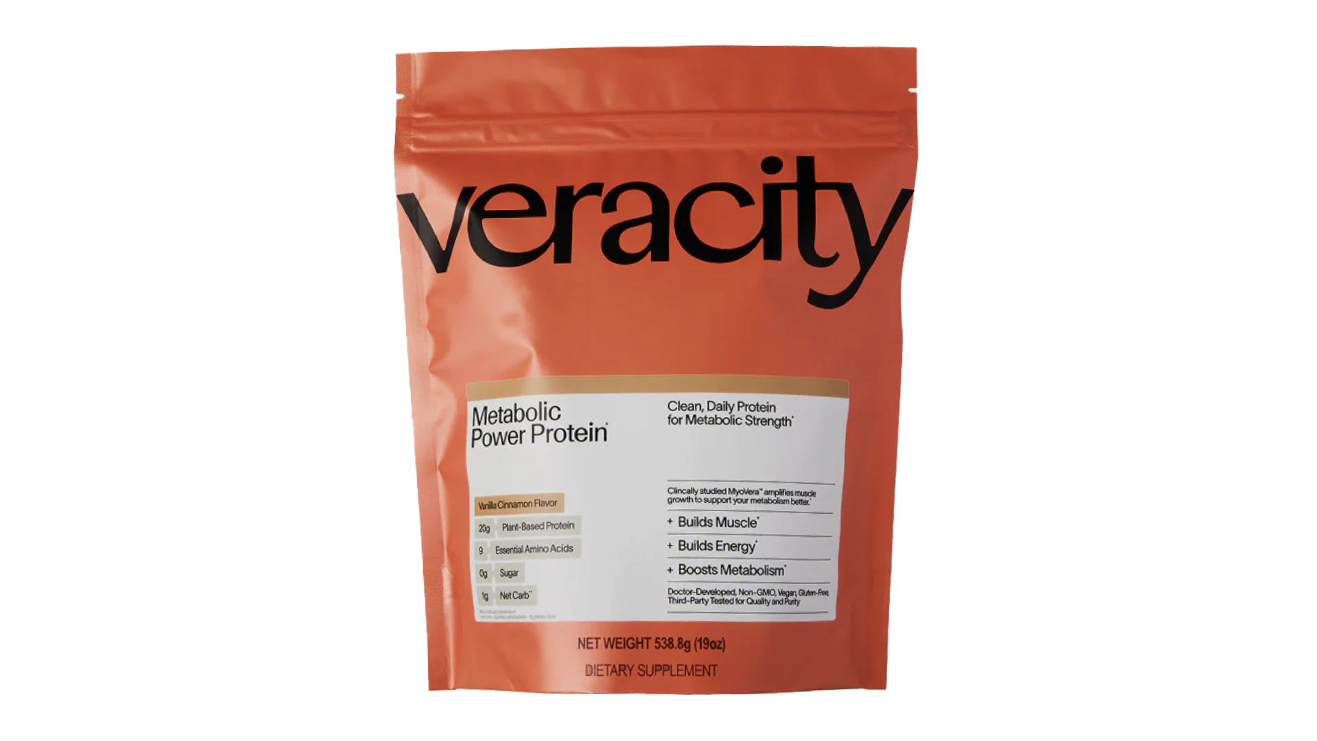 “If you’re like me and feel the daily pressure to ‘hit your protein’ has somehow surpassed the peer pressure to do drugs in high school, allow me to introduce the easiest way to meet your macros—no chalky powders or joyless chicken breasts required. Veracity’s Metabolic Protein powder delivers 20 grams of protein per two scoops, plus the brand’s proprietary MyoVera blend: a clinically studied complex of chromium and amylopectin designed to support muscle mass and metabolism.”